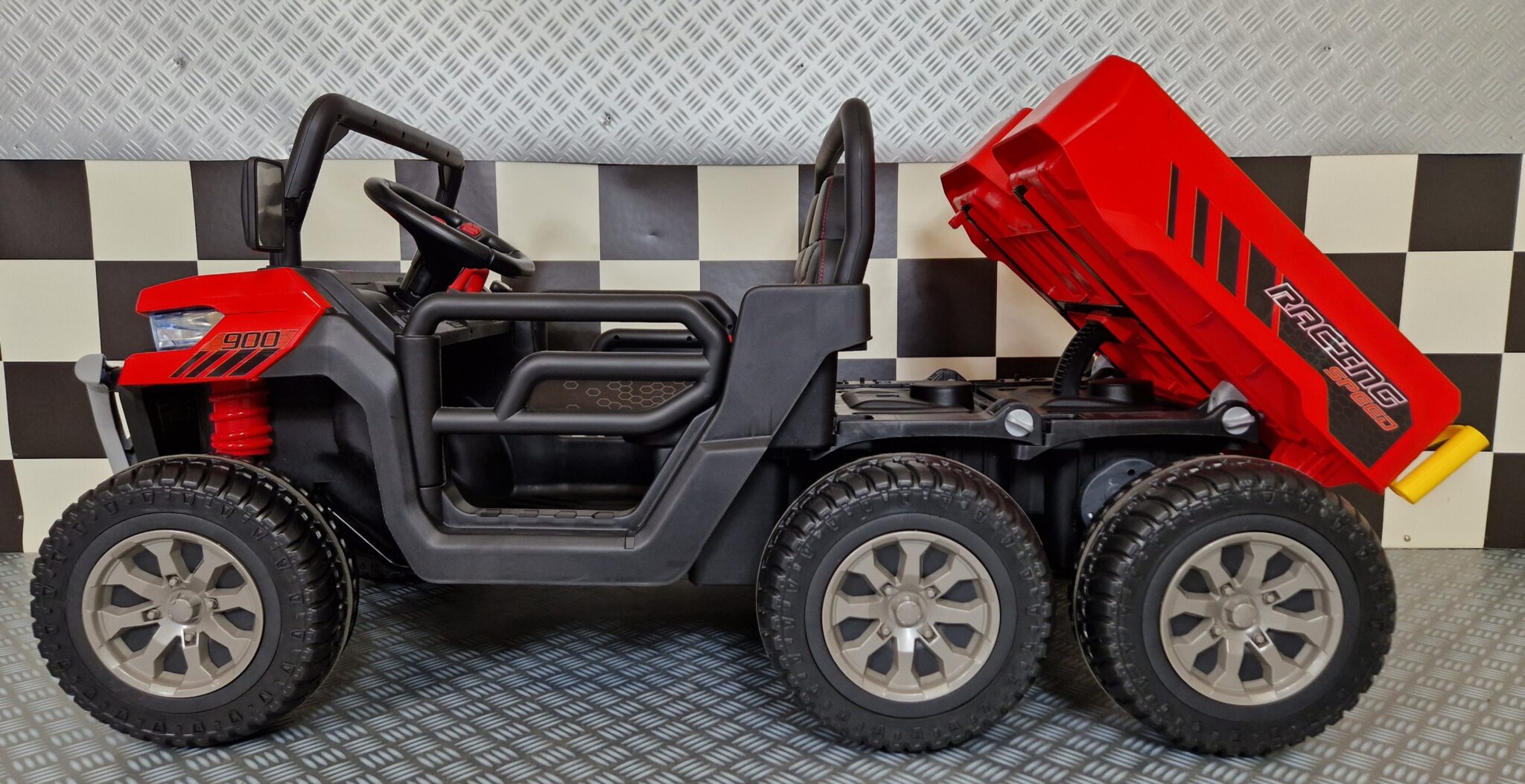 This powerful 24-volt electric children's jeep Transporter has two powerful 200-watt motors and six wheels. Suitable for children from approximately three years of age. This product will be shipped in two boxes due to weight and size restrictions. Therefore, there will be two times shipping cost calculated.