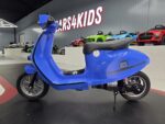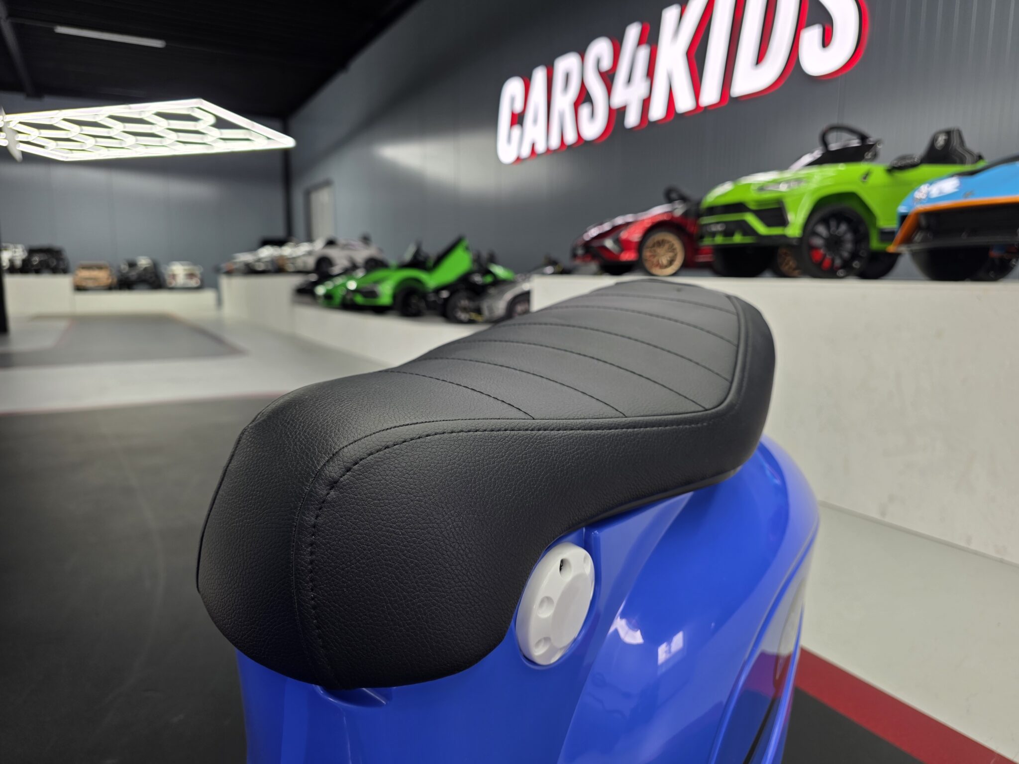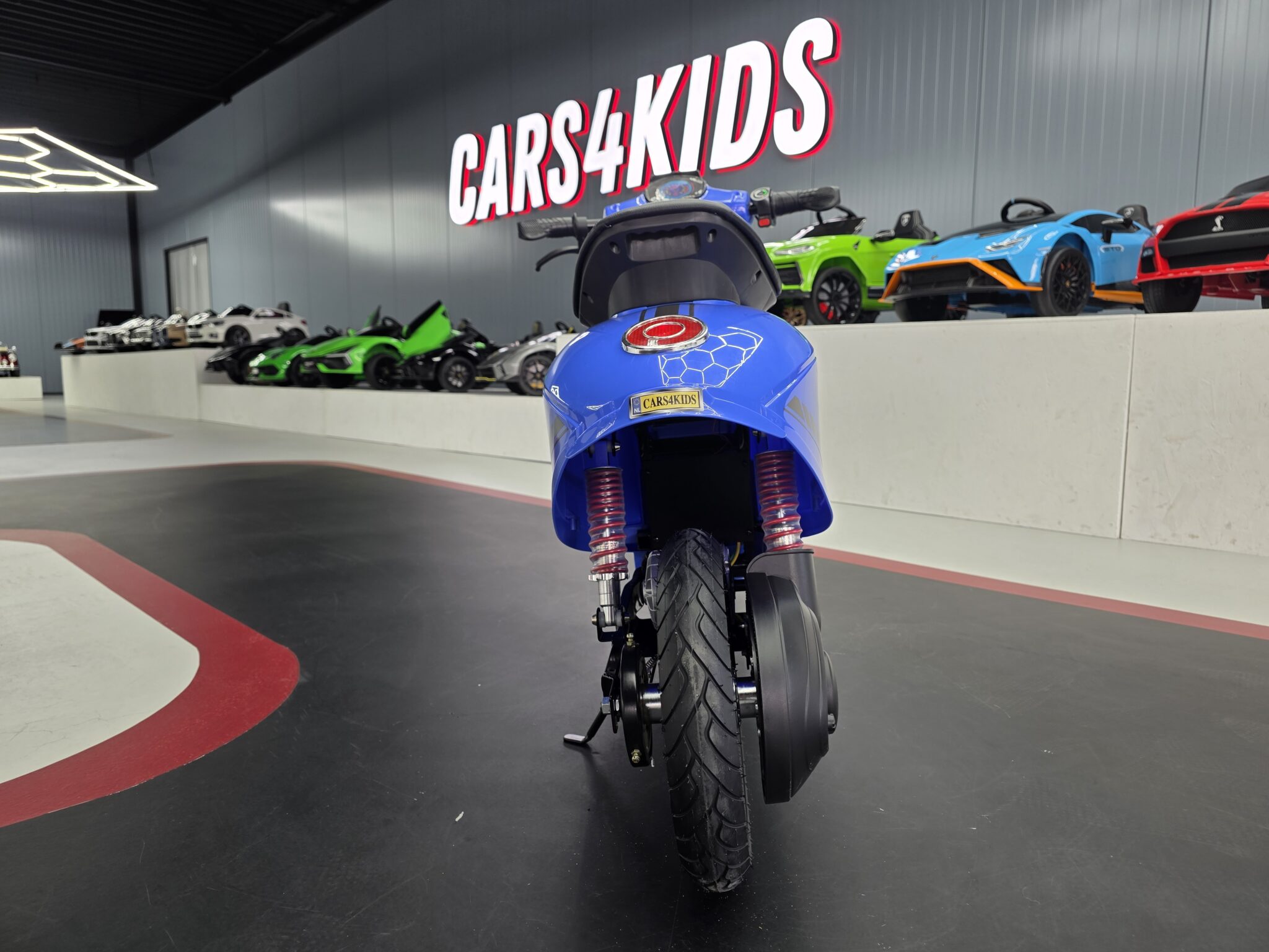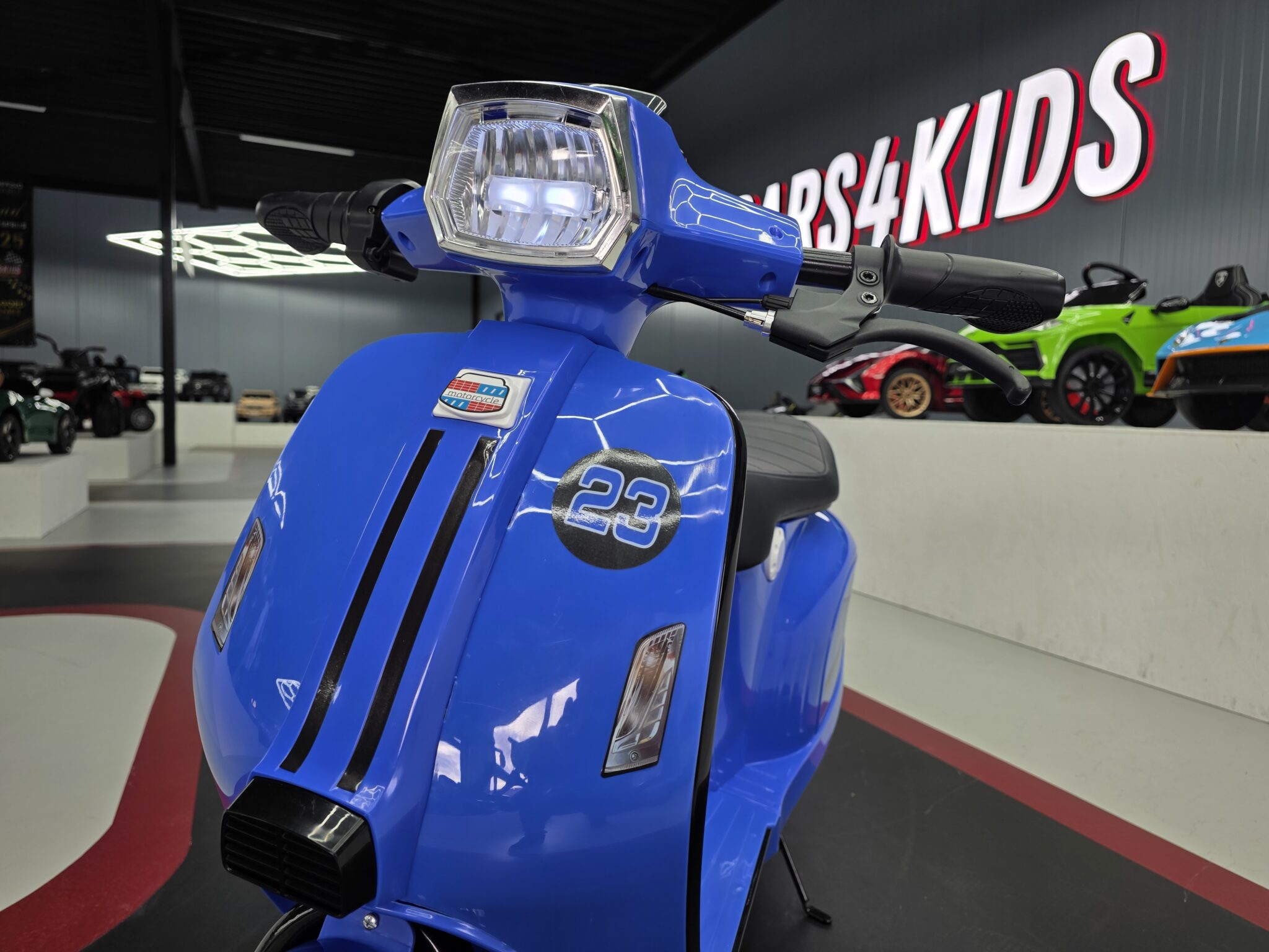 Electric children’s scooter, 24V blue, with 2 batteries, 2 speeds, pneumatic tires, and a handbrake. Ideal for children aged 6 and up.