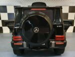 These metallic black Mercedes G63 toy jeep has rubber tires, leather seat et 2.4 G RC soft start system , convient aux enfants âgés de 3 ans (en raison de la présence de petites pièces)
