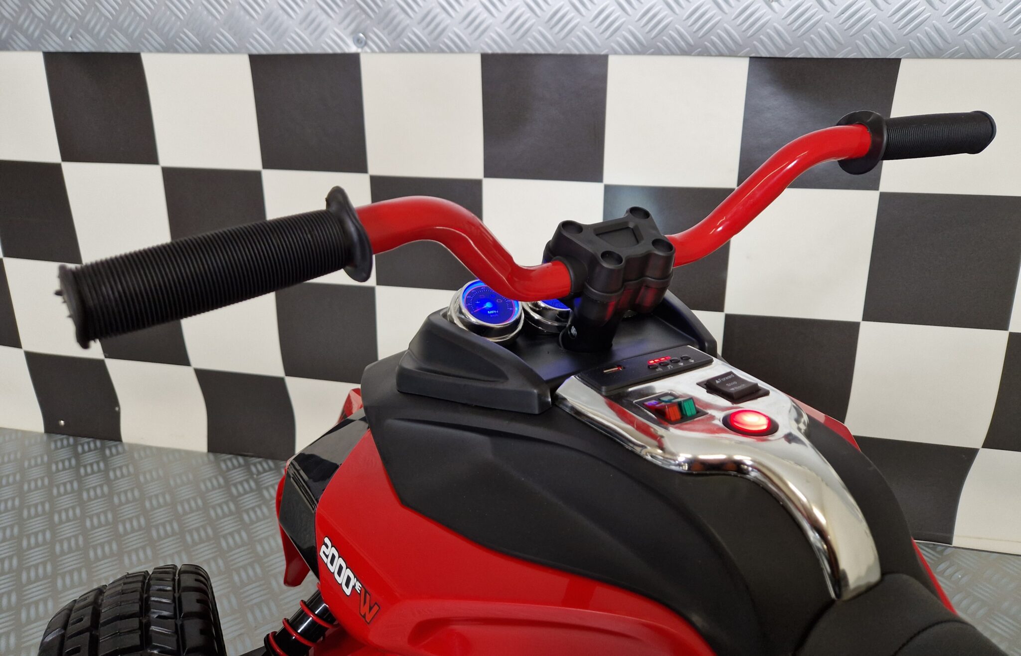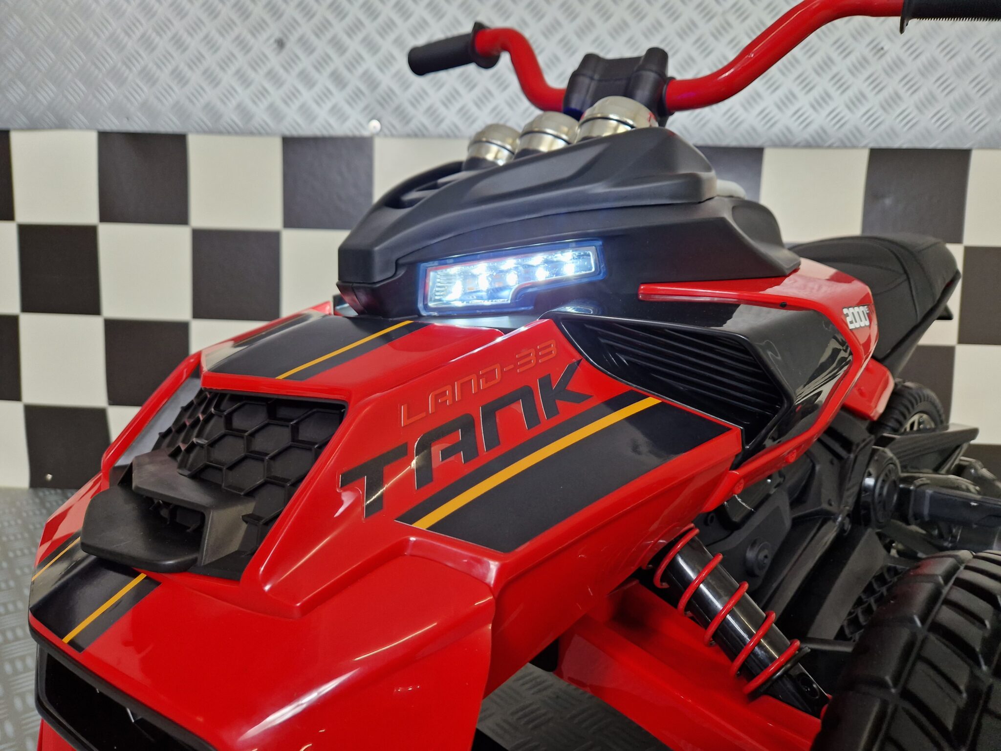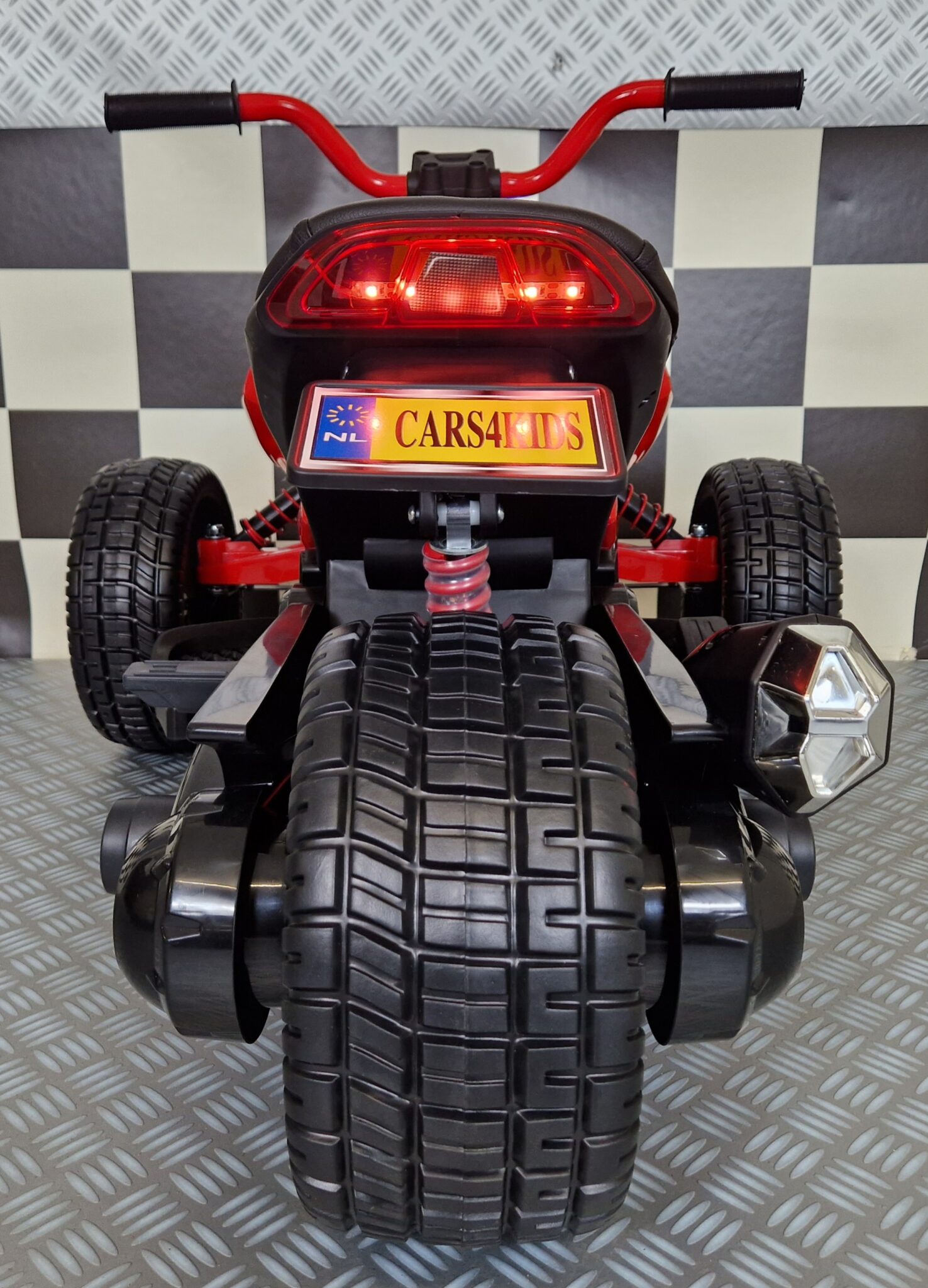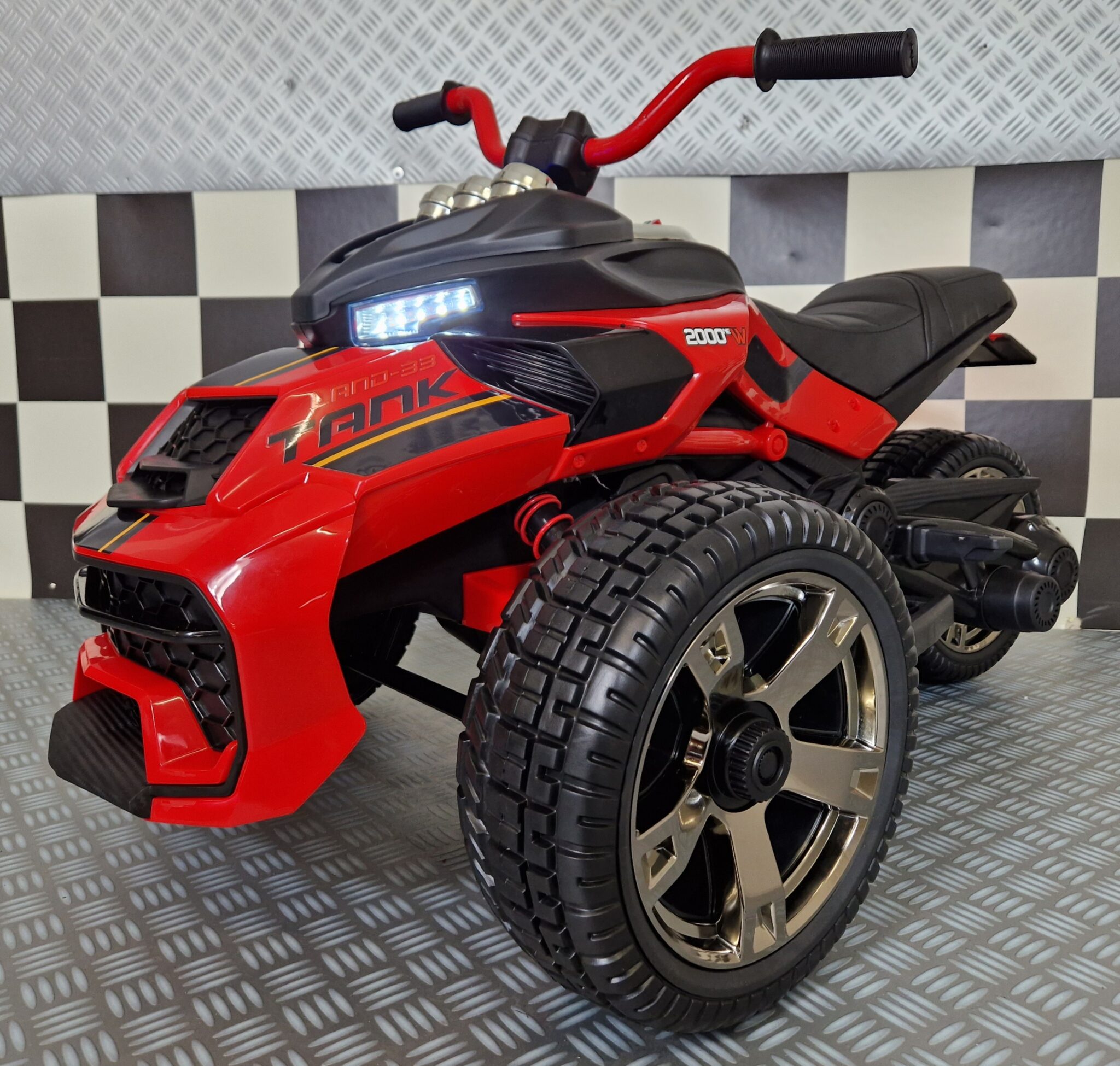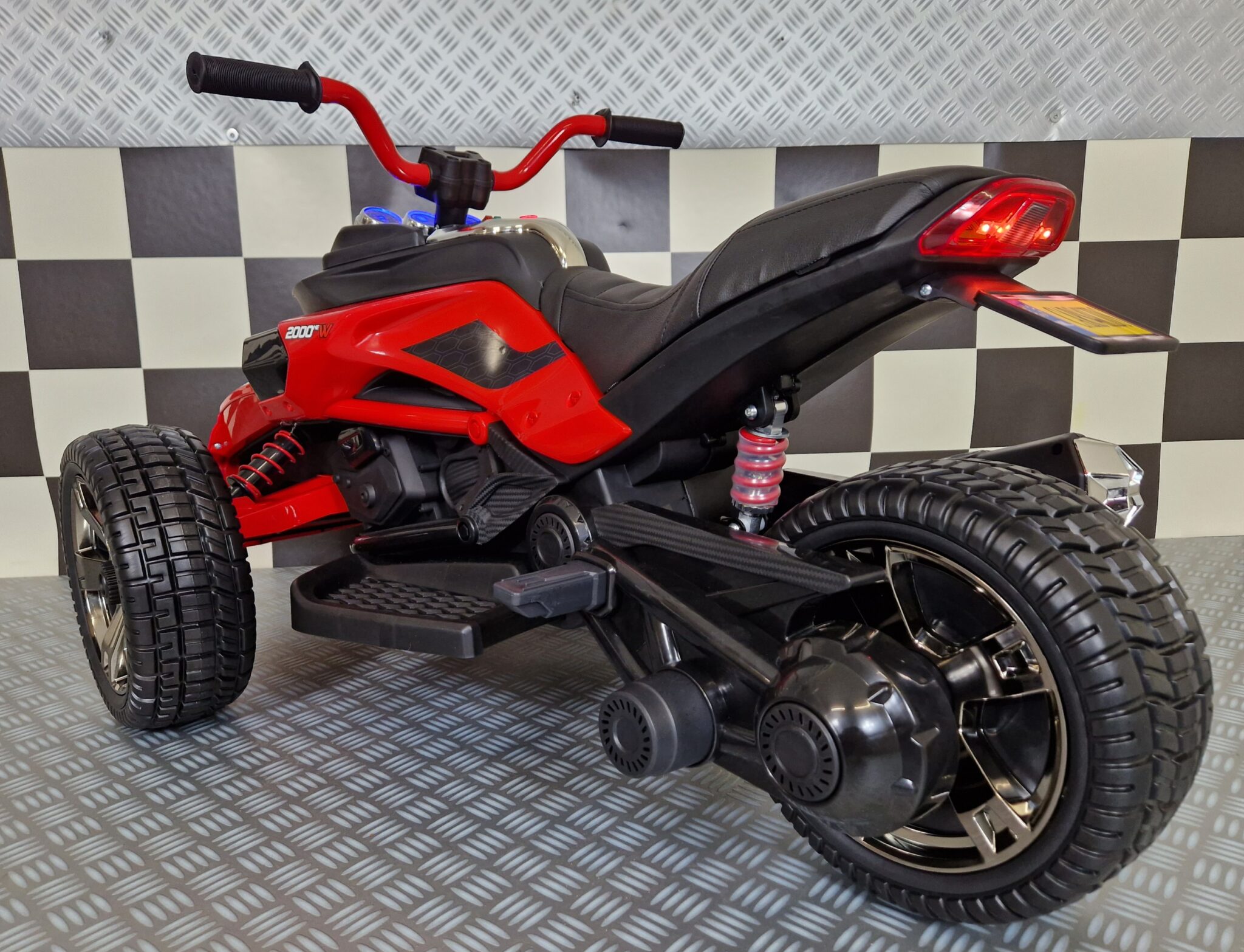 This electric Spyder children’s motorbike has 2 wheels at the front and 1 at the back. Suitable for children from 3 years to 5 years.