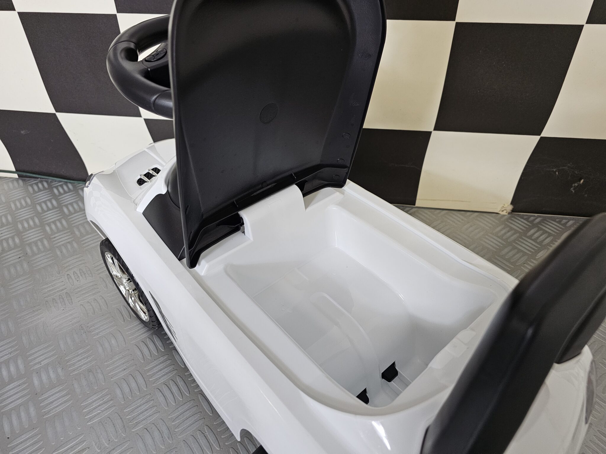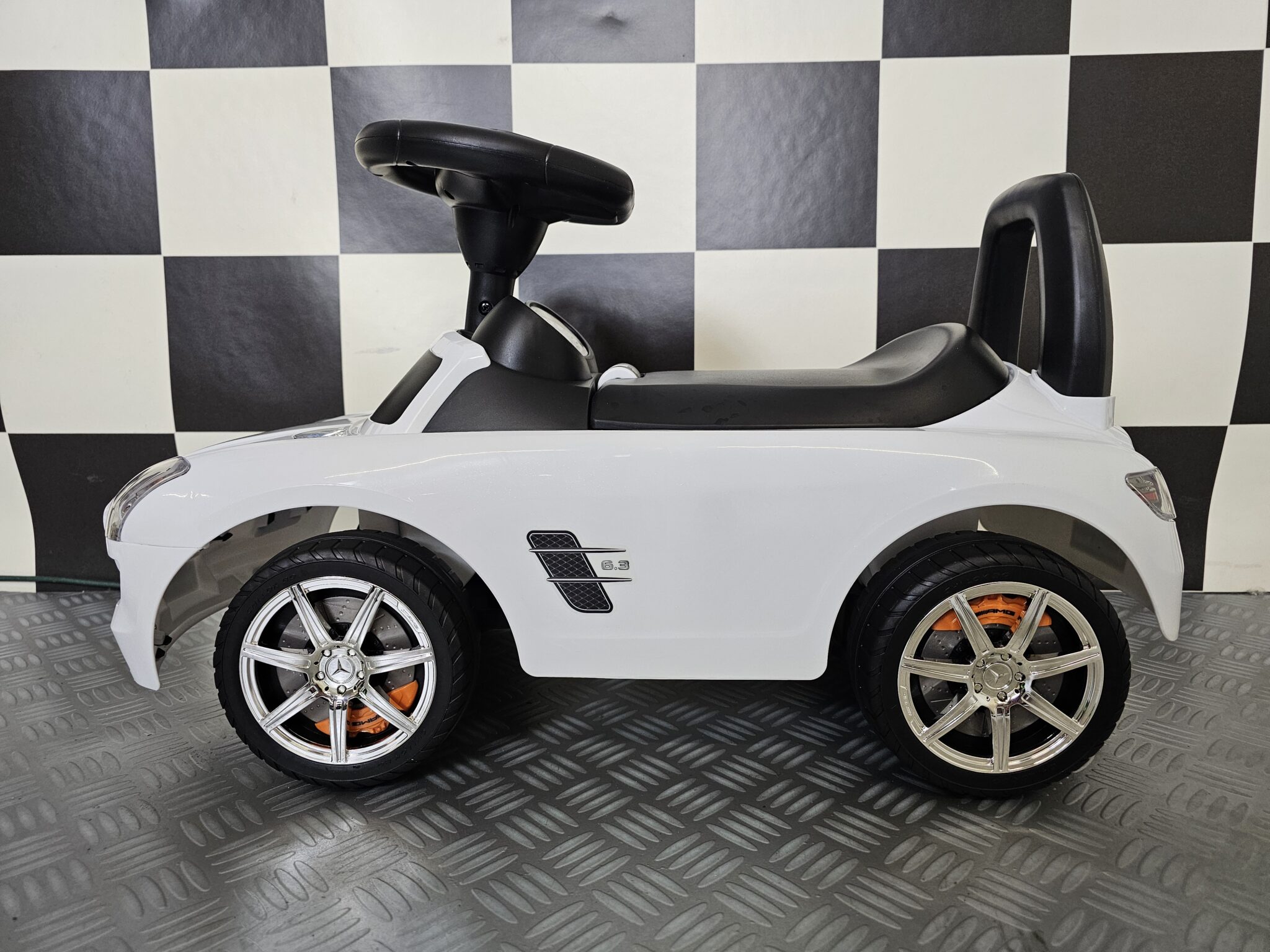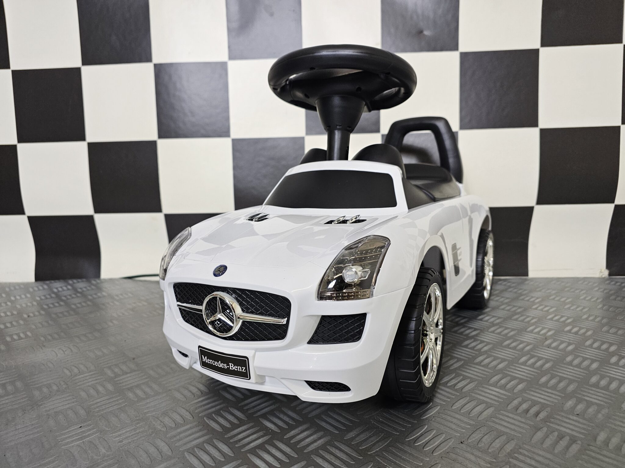 The Mercedes SLS ride-on car has a nice storage compartment for some things.