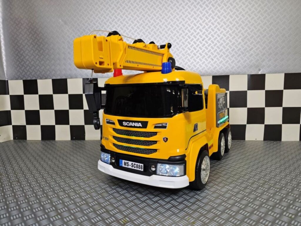 Electric crane truck Scania 12 volts. Suitable from approximately 3 years. The crane is electrically adjustable!