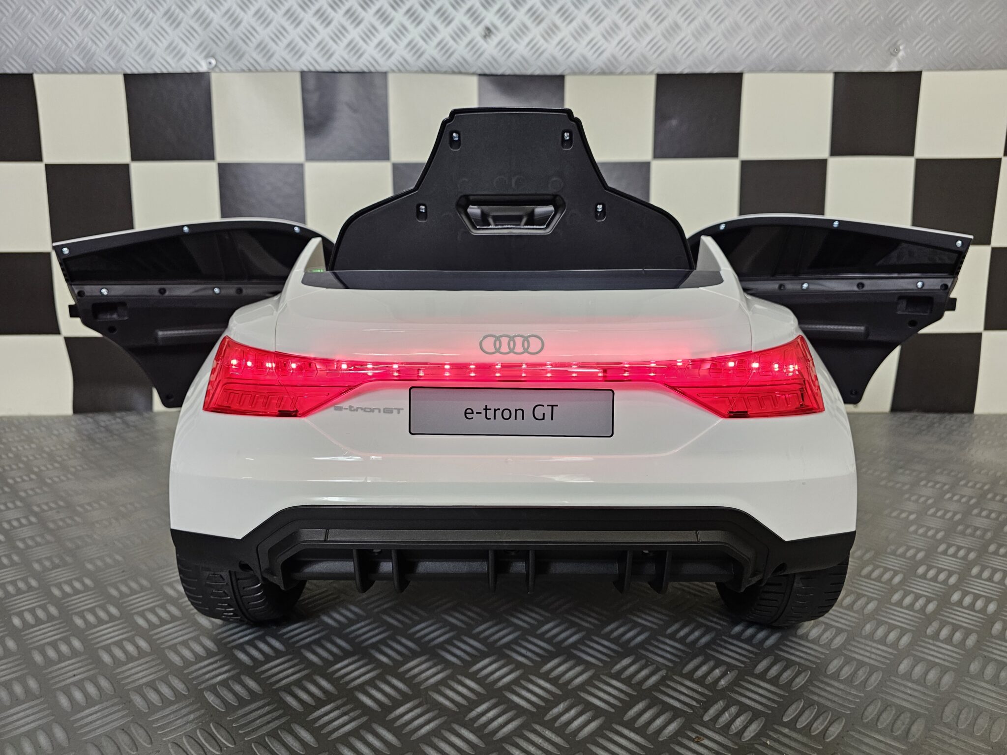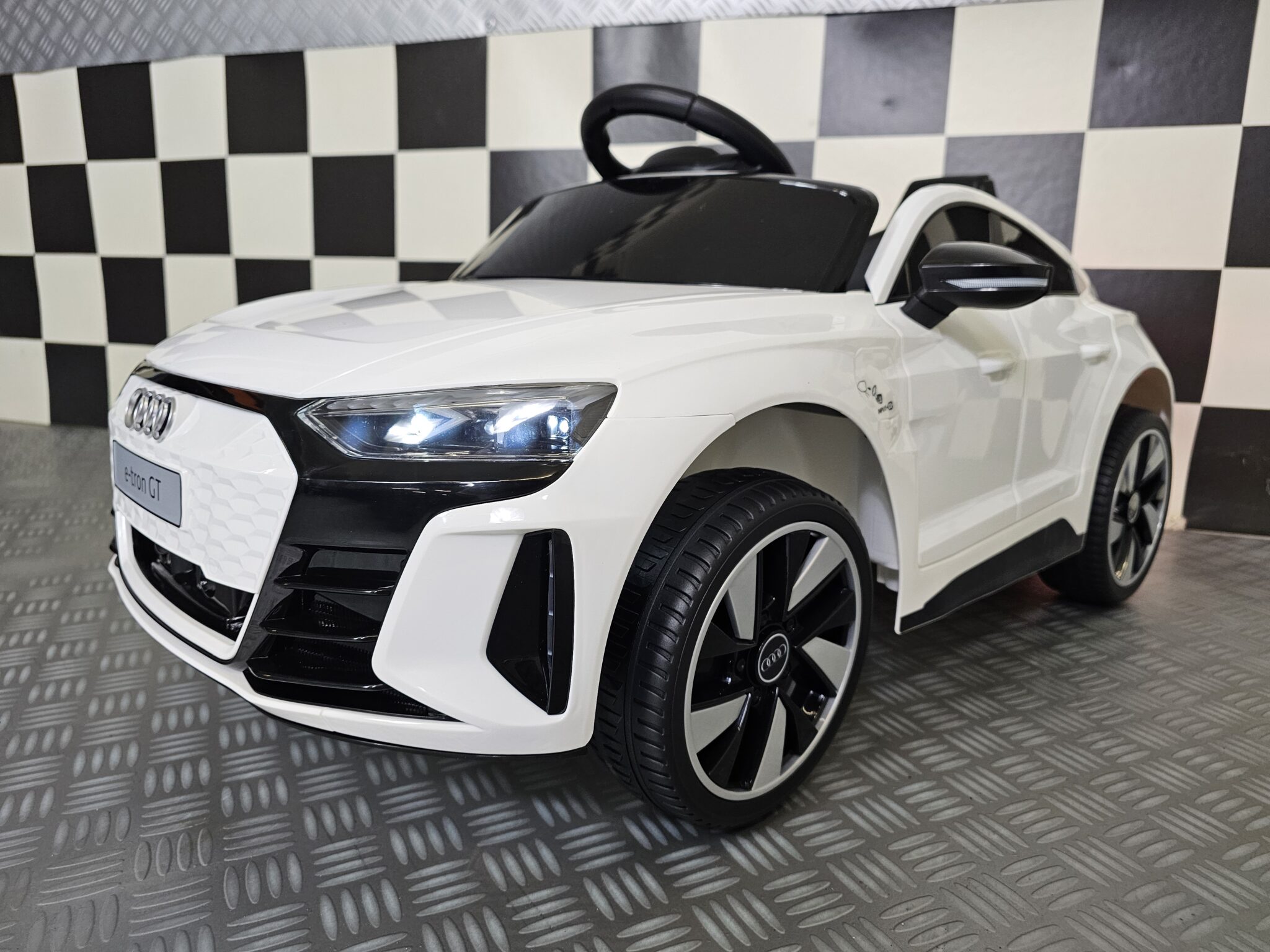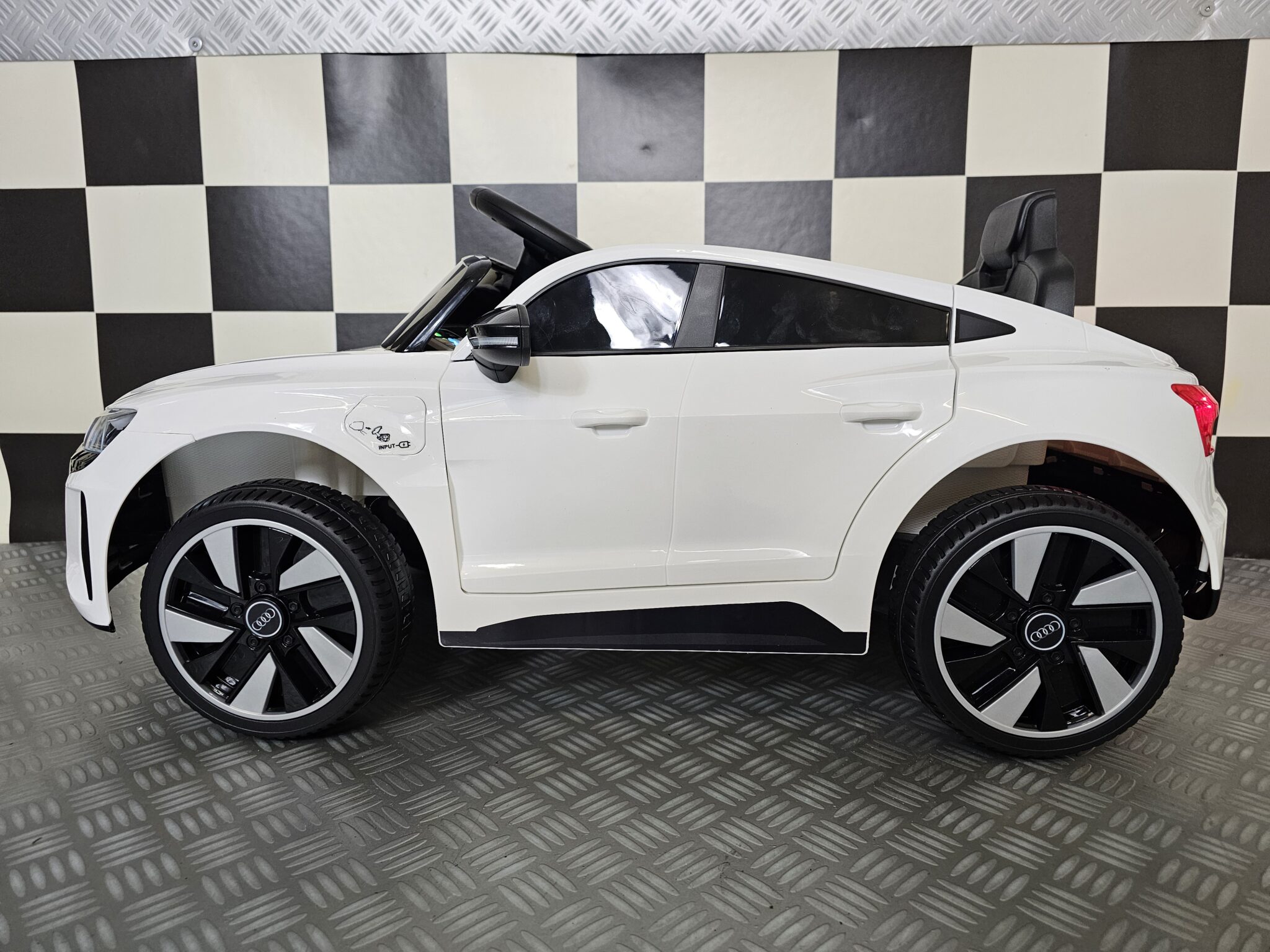 The Audi E-Tron children’s car was developed under license from Audi itself. This licensed children’s car is suitable for children for the smallest kids up to about 4 years old. (max child height 1 meter) Always use under supervision under the age of 3! From the age of 3 they will be able to play with it independently.