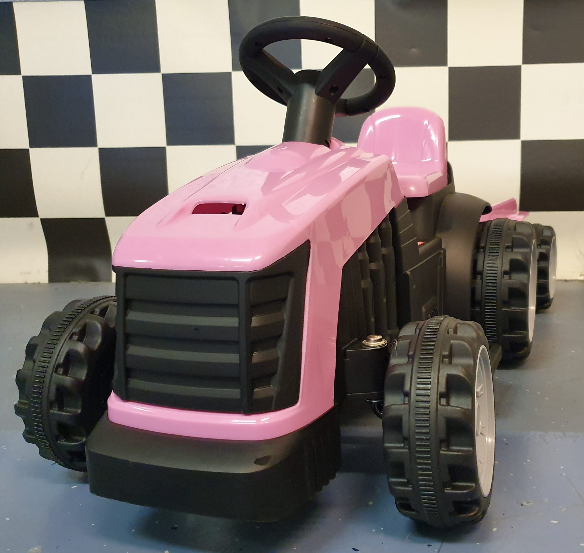 Children’s electric tractor with trailer 6 volt pink.