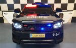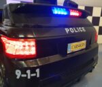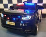 Electric toy police car 12 volt, 2.4G RC rubber tires, leather seat black